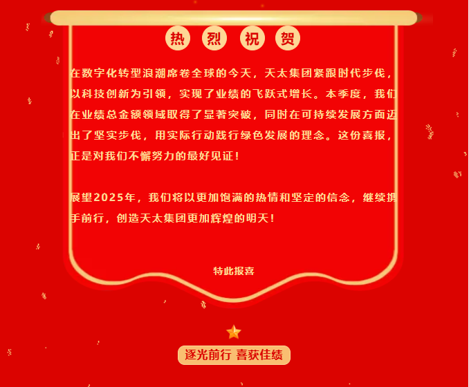 中標喜訊!天太集團第四季度喜報:業績卓越彰顯!