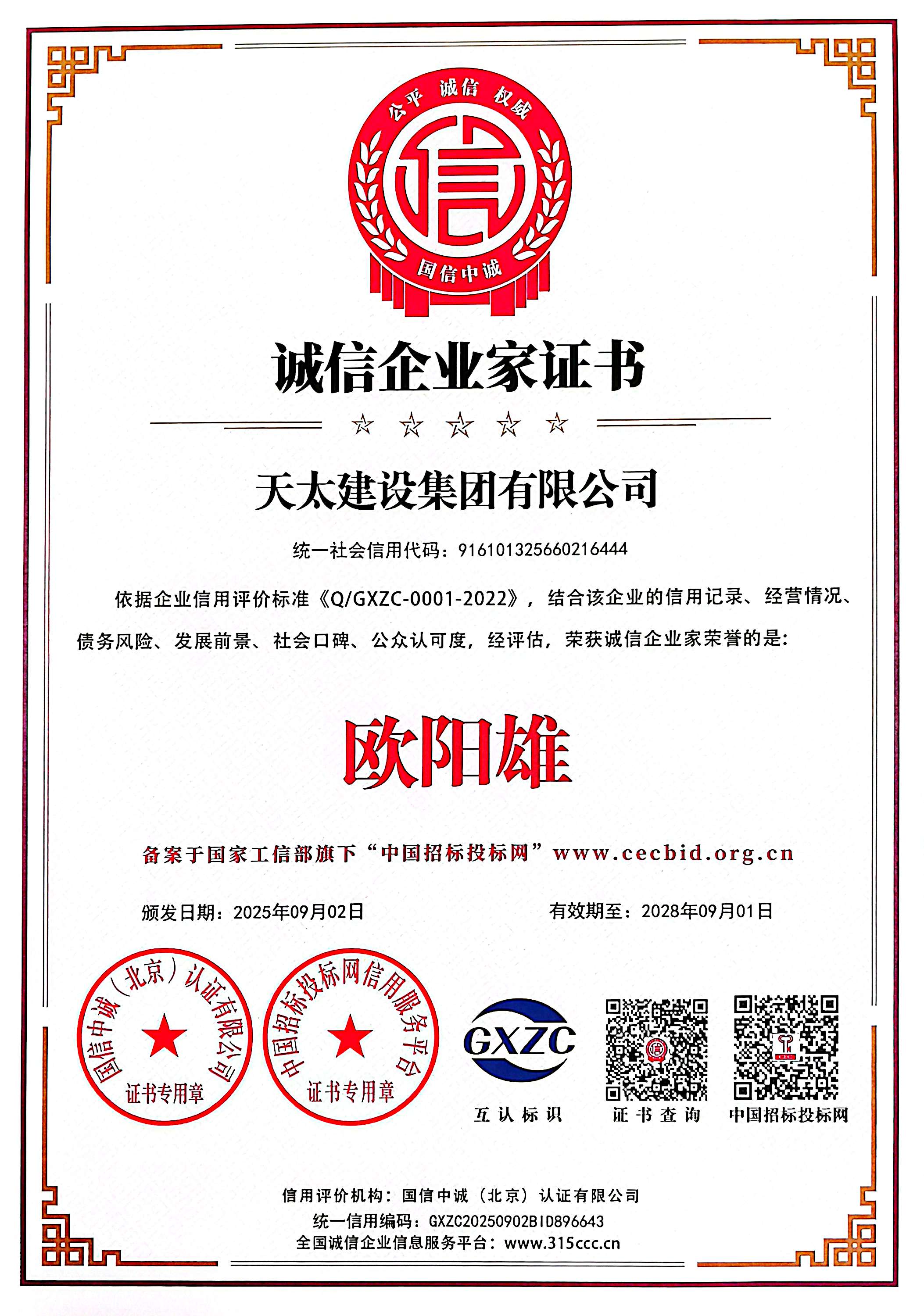 歐陽雄誠信企業家
