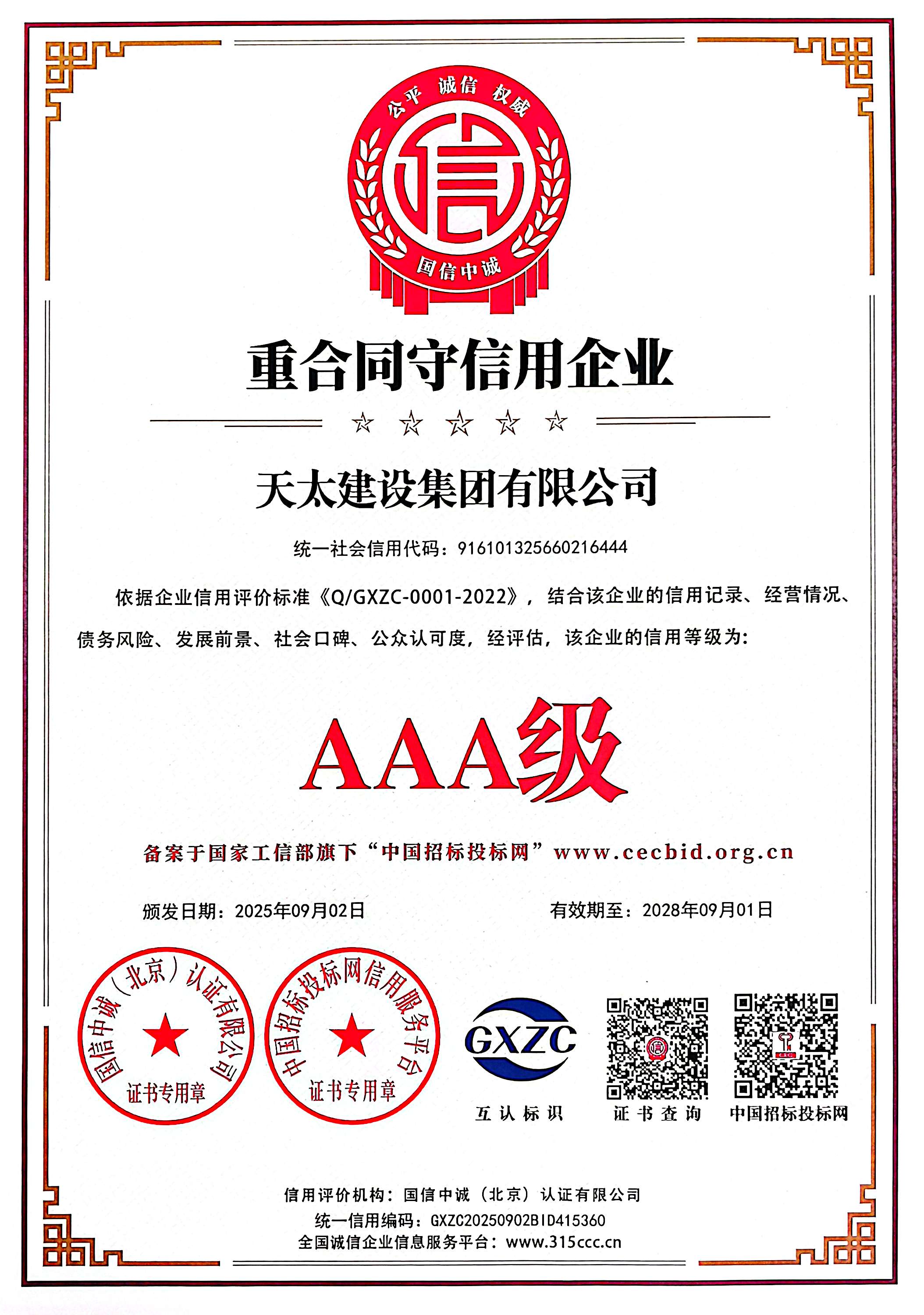 AAA級重合同守信用企業